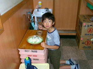 12分間で食べられるように長男は冷たいざるうどん!
