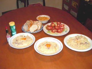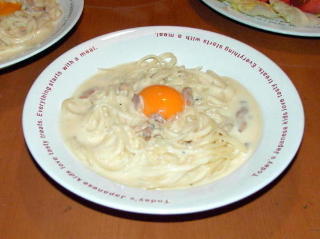 カルボナーラスパゲティ・トマトサラダ・コーンバター